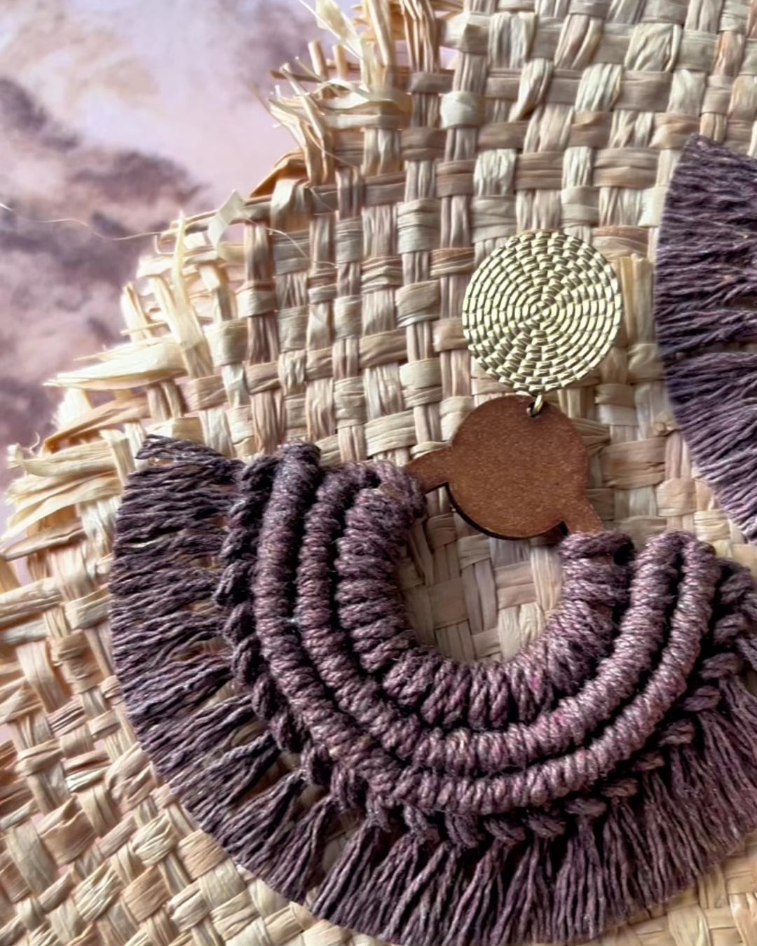 Otros accesorios (sombreros, sandalias, aretes sin macramé): Limpiar con paño seco o ligeramente húmedo si hay alguna mancha. Evitar exposición a humedad excesiva y fuentes de calor.